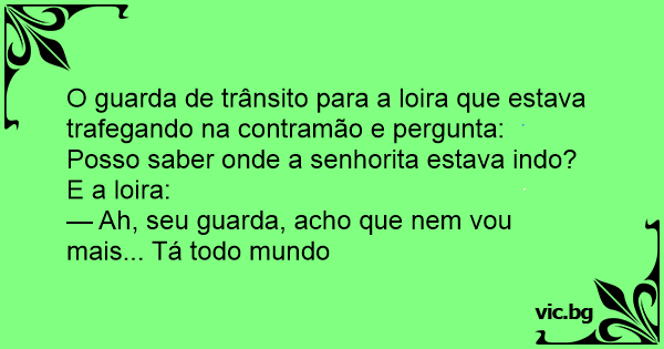 O guarda de trânsito para a loira que estava trafegando na contramão e pergunta: