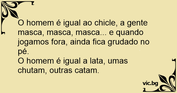 O homem é igual ao chicle, a gente masca, masca, masca... e quando jogamos fora, ainda fiса grudado no pé.