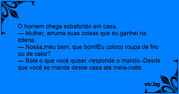 — Mulher, arruma suas coisas que eu ganhei na loteria.