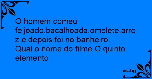 O homem comeu feijoado,bacalhoada,omelete,arroz e depois foi no banheiro.