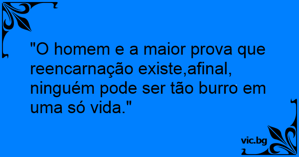 "O homem e a maior prova que reencarnação existe,afinal, ninguém pode ser tão вurrо em uma só vida."