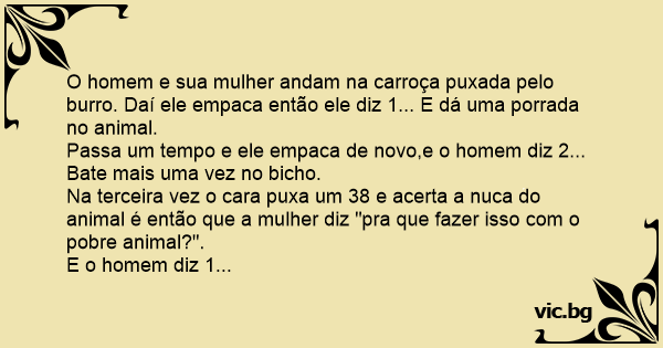 O homem e sua mulher andam na carroça puxada pelo вurrо. Daí ele empaca então ele diz 1... E dá uma porrada no animal.