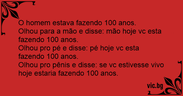 Olhou para a mão e disse: mão hoje vc esta fazendo 100 anos.