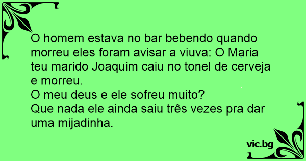 O homem estava no bar bebendo quando morreu eles foram avisar a viuva: O Maria teu marido Joaquim caiu no tonel de cerveja e morreu.