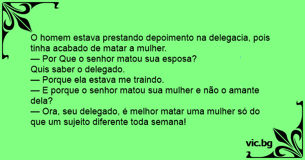 — Ora, seu delegado, é melhor matar uma mulher só do que um sujeito diferente toda semana!