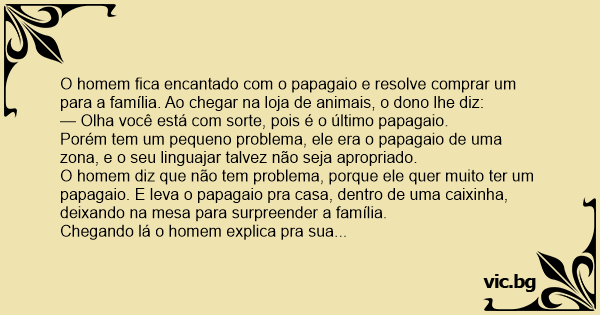 — Olha você está com sorte, pois é o último papagaio.
