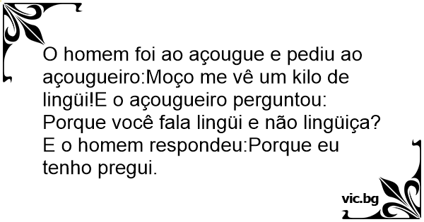 O homem foi ao açougue e pediu ao açougueiro:Moço me vê um kilo de lingüi!E o açougueiro perguntou: