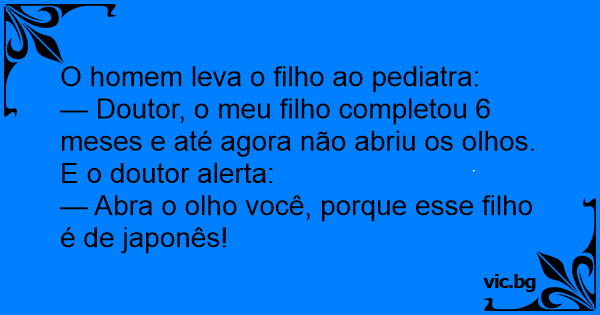 — Doutor, o meu filho completou 6 meses e até agora não abriu os olhos.