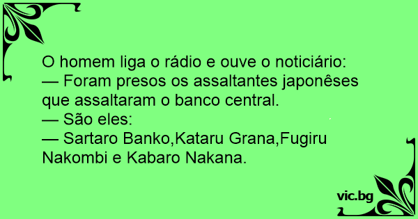 — Foram presos os assaltantes japonêses que assaltaram o banco central.