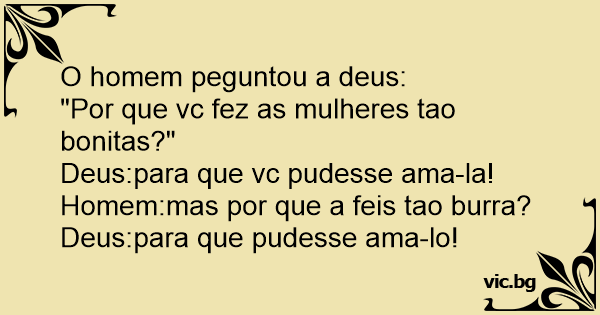"Por que vc fez as mulheres tao bonitas?"