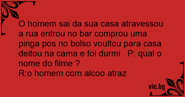 O homem sai da sua casa atravessou a rua entrou no bar comprou uma pinga pos no bolso voultou para casa deitou na cama e foi durmi . P: qual o nome do filme ?