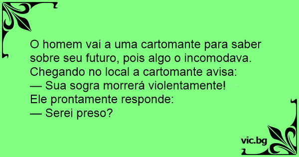 Un uomo va dalla più famosa cartomante della città per farsi predire il futuro circa la sua famiglia.,La donna, guardando le carte, gli dice: "Sua suocera avrà un grave incidente...",E l'uomo risponde subito: "Sì, questo lo so, ma voglio sapere se la polizia mi scoprirà!"