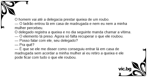 — O ladrão entrou lá em casa de madrugada e nem eu nem a minha mulher percebeu.