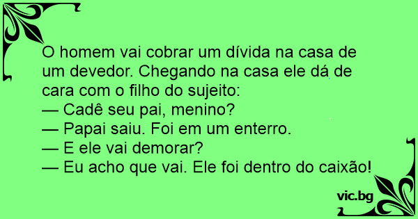 O homem vai cobrar um dívida na casa de um devedor. Chegando na casa ele dá de cara com o filho do sujeito: