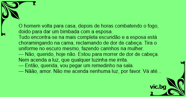 — Não, querido, hoje não. Estou para morrer de dor de cabeça. Nem acenda a luz, que qualquer luzinha me irrita.