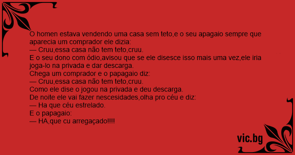 O homen estava vendendo uma casa sem teto,e o seu apagaio sempre que aparecia um comprador ele dizia: