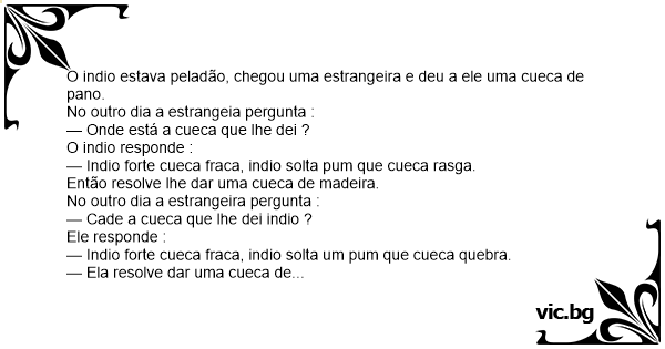 — Indio forte cueca fraca, indio solta um pum que cueca quebra.