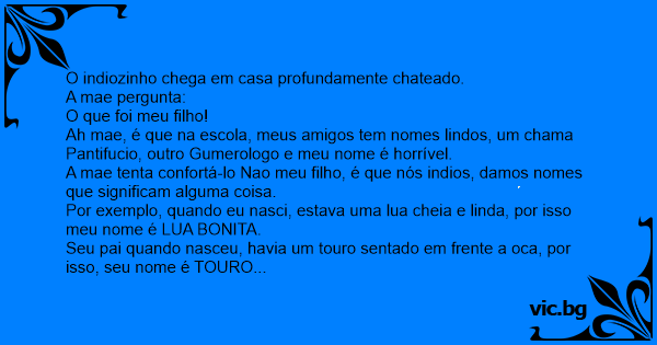 Ah mae, é que na escola, meus amigos tem nomes lindos, um chama Pantifucio, outro Gumerologo e meu nome é horrível.