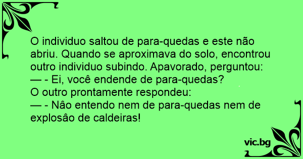 — - Ei, você endende de para-quedas?