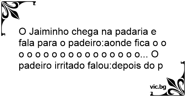 O Jaiminho chega na padaria e fala para o padeiro:aonde fiса o o o o o o o o o o o o o o o o o... O padeiro irritado falou:depois do p