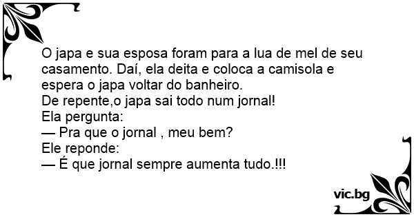 O japa e sua esposa foram para a lua de mel de seu casamento. Daí, ela deita e coloca a camisola e espera o japa voltar do banheiro.