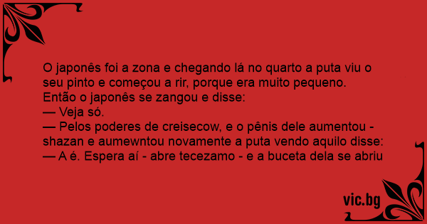 O japonês foi a zona e chegando lá no quarto a рuта viu o seu pinto e começou a rir, porque era muito pequeno.