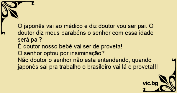 O japonês vai ao médico e diz doutor vou ser pai. O doutor diz meus parabéns o senhor com essa idade será pai?