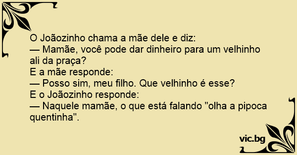 — Naquele mamãe, o que está falando "olha a pipoca quentinha".