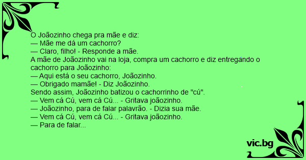 — Joãozinho, para de falar palavrão. - Dizia sua mãe.