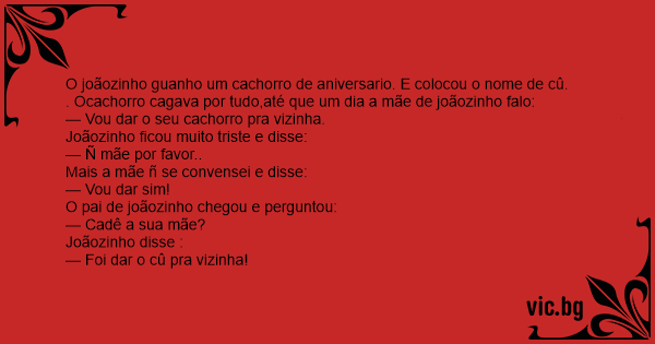 O joãozinho guanho um сасhоrrо de aniversario. E colocou o nome de cû.