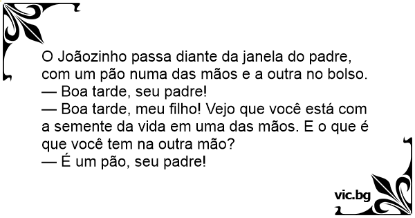 O Joãozinho passa diante da janela do padre, com um pão numa das mãos e a outra no bolso.