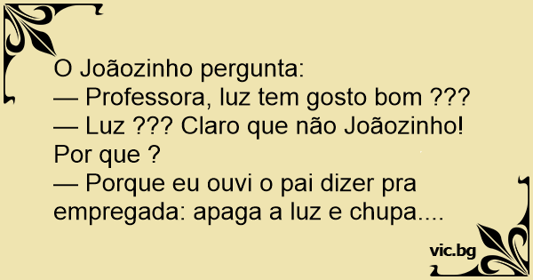 — Porque eu ouvi o pai dizer pra empregada: apaga a luz e chupa....