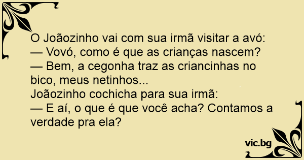 — Bem, a cegonha traz as criancinhas no bico, meus netinhos...