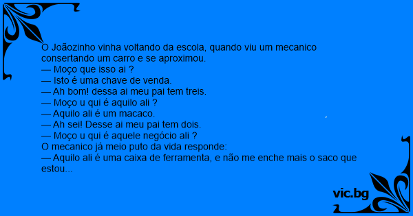 O mecanico muito P... da vida tira o pinto para fora, mostra para o Joãozinho e pergunte: