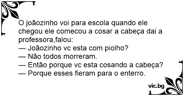 O joãozinho voi para escola quando ele chegou ele comecou a cosar a cabeça dai a professora,falou: