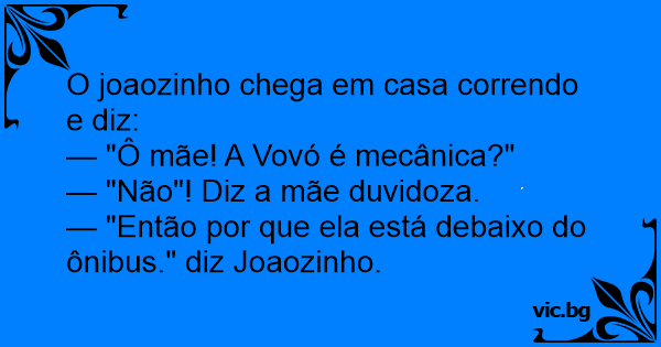 — "Então por que ela está debaixo do ônibus." diz Joaozinho.