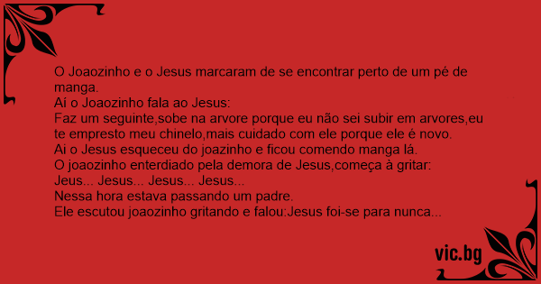 Ele escutou joaozinho gritando e falou:Jesus foi-se para nunca mais voltar.