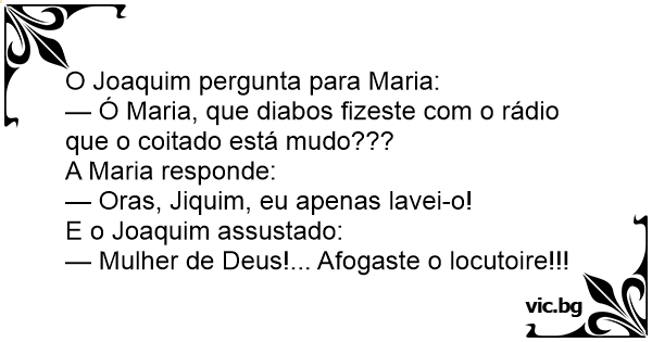 — Ó Maria, que diabos fizeste com o rádio que o coitado está mudo???