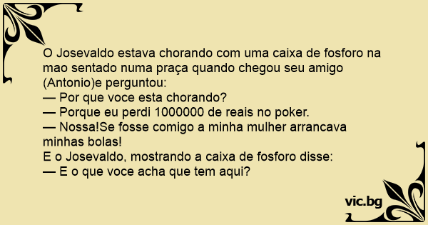 O Josevaldo estava chorando com uma caixa de fosforo na mao sentado numa praça quando chegou seu amigo(Antonio)e perguntou: