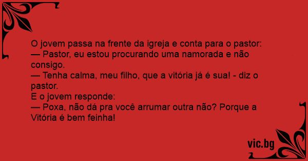 — Poxa, não dá pra você arrumar outra não? Porque a Vitória é bem feinha!