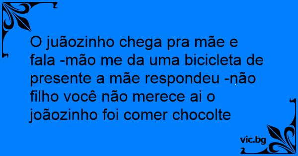 O juãozinho chega pra mãe e fala -mão me da uma bicicleta de presente a mãe respondeu -não filho você não merece ai o joãozinho foi comer chocolte