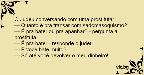 — É pra bater ou pra apanhar? - pergunta a prostituta.