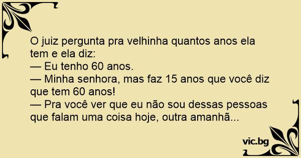 O juiz pergunta pra velhinha quantos anos ela tem e ela diz: