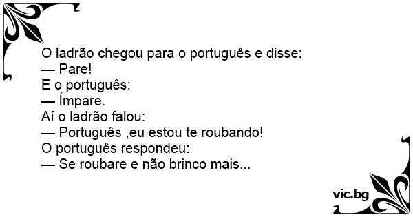 O ladrão chegou para o português e disse: