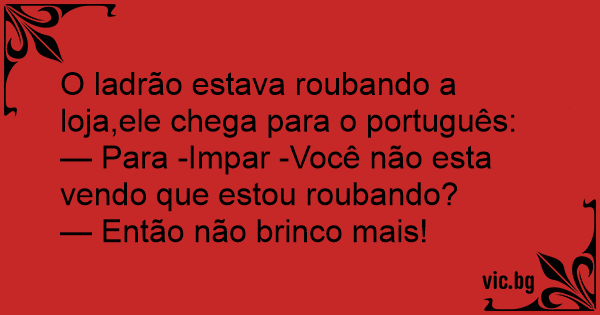 O ladrão estava roubando a loja,ele chega para o português: