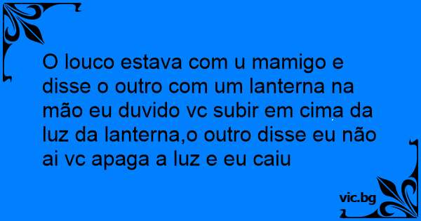 O louco estava com u mamigo e disse o outro com um lanterna na mão eu duvido vc subir em cima da luz da lanterna,o outro disse eu não ai vc apaga a luz e eu caiu