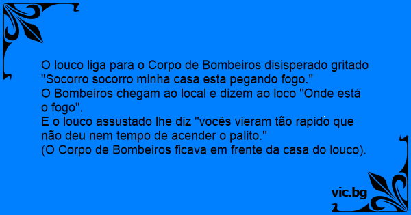 O louco liga para o Corpo de Bombeiros disisperado gritado "Socorro socorro minha casa esta pegando fogo."