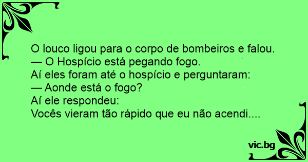 O louco ligou para o corpo de bombeiros e falou.