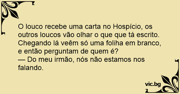 O louco recebe uma carta no Hospício, os outros loucos vão olhar o que que tá escrito. Chegando lá veêm só uma foliha em branco, e então perguntam de quem é?