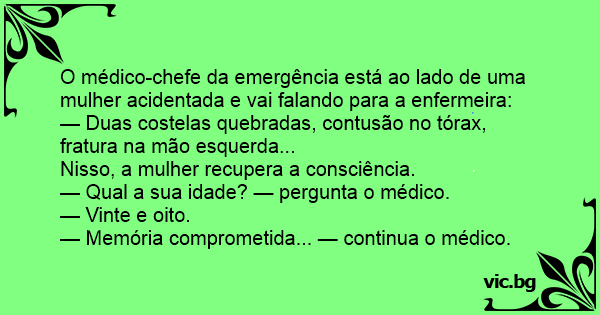 — Qual a sua idade? — pergunta o médico.